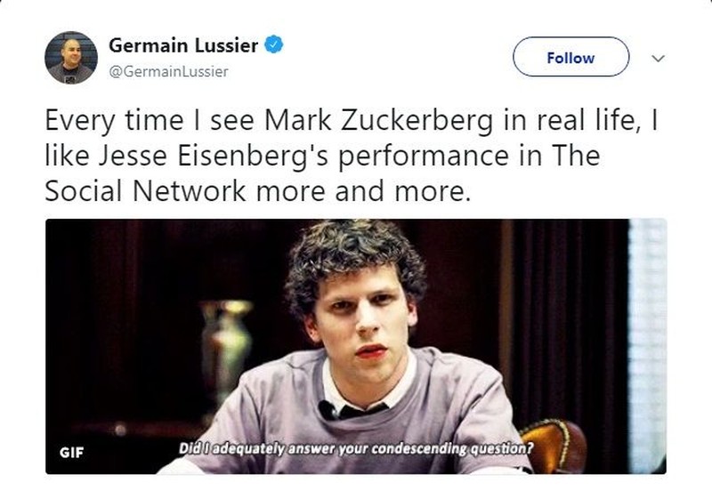 Ada juga yang jadi lebih suka versi Zuckerberg dalam film The Sosial Network yang diperankan oleh Jesse Eisenberg. (Foto: Twitter)