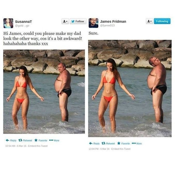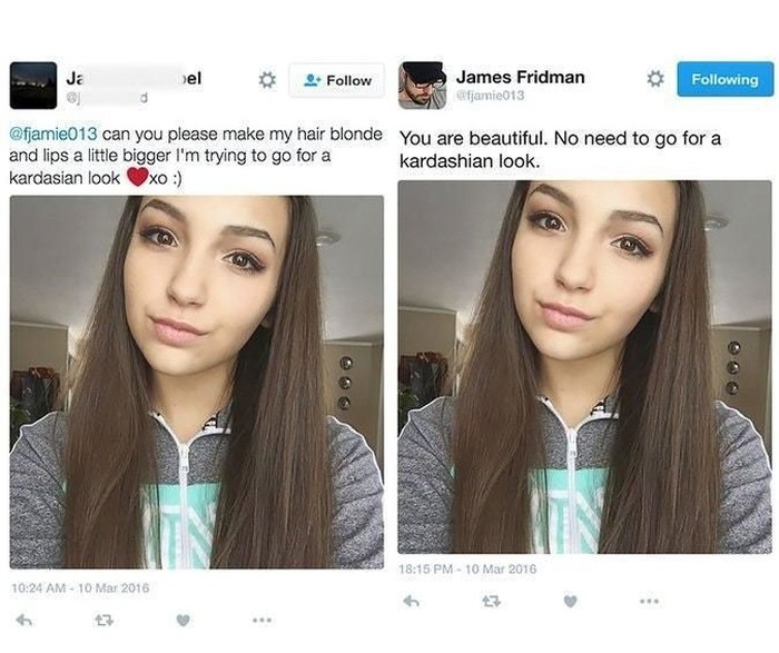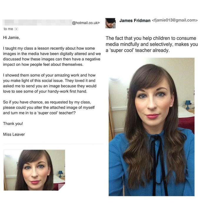Tapi kerap kali James tidak mengedit sama sekali foto yang diminta netizen. Foto: facebook.com/jamesfridmanpage