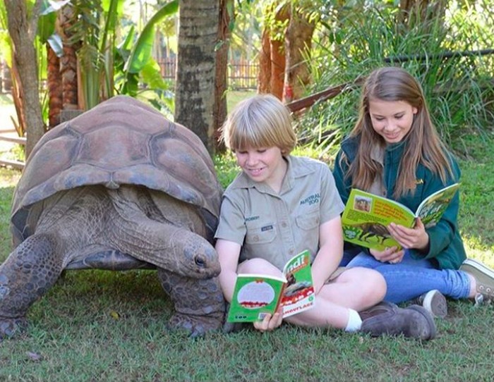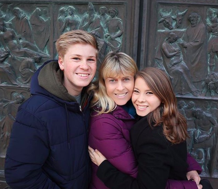 Bersama sang ibu, Terri Irwin dan adiknya, Robert Irwin. Mereka semua penyayang binatang seperti ayahnya. Foto: Instagram