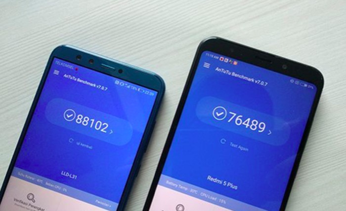 Dari benchmark AnTuTu, Honor 9 Lite unggul karena mampu mendapatkan skor 88 ribuan sedangkan Redmi 5 Plus 76 ribuan. Foto: istimewa