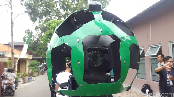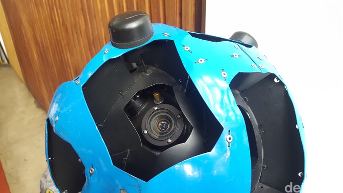 Alat ini memiliki 15 lensa yang masing-masing menunjuk ke arah berbeda agar dapat memproduksi tampilan panorama 360 derajat. Foto: Muhamad Imron Rosyadi/detikINET