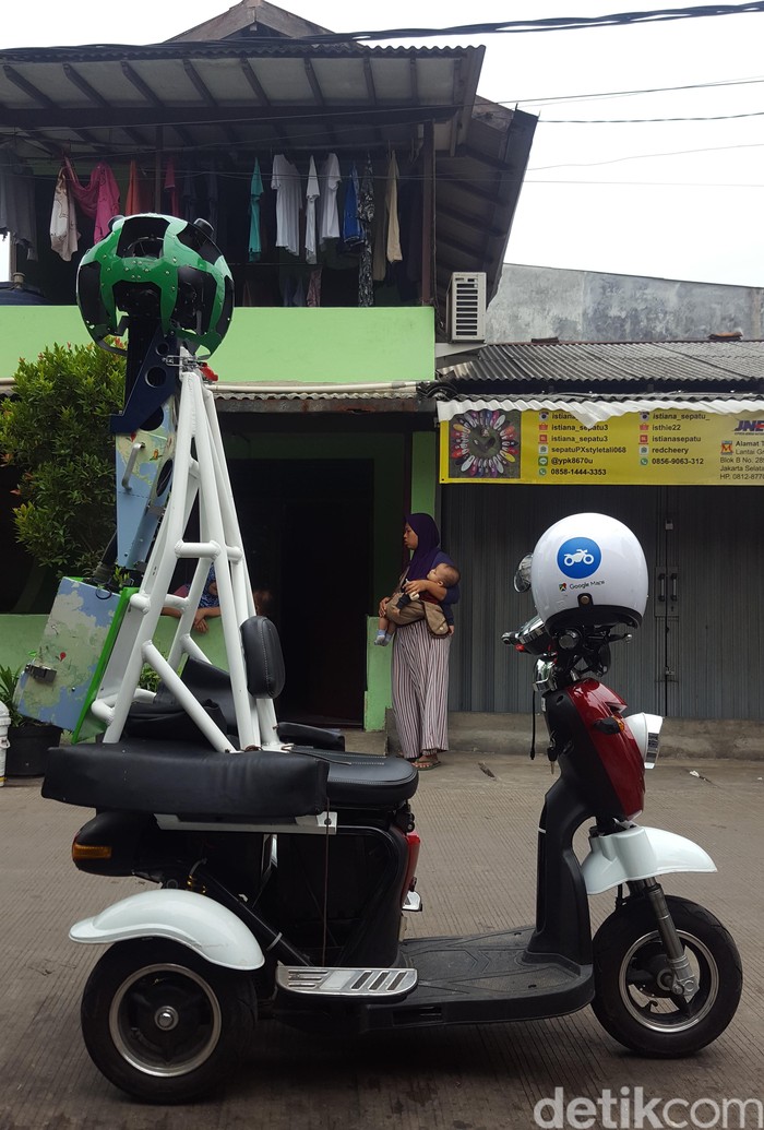 Untuk memberikan gambaran seluruh gang sempit di Indonesia pada Street View, Google menyiapkan alat bernama Trekker. Foto: Muhamad Imron Rosyadi/detikINET