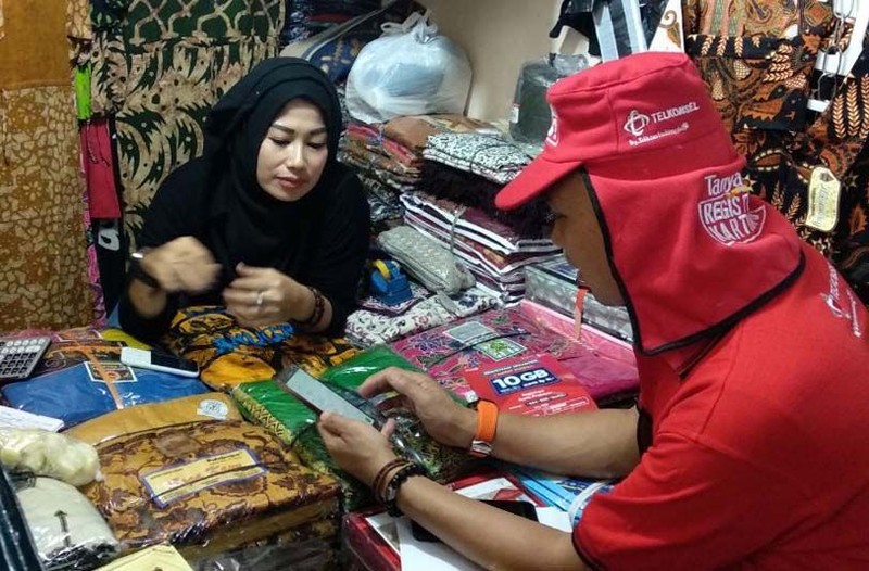Sosialisasi pengguna kartu prabayar Telkomsel itu juga dilakukan di pusat perbelanjaan. Begini nih suasananya.