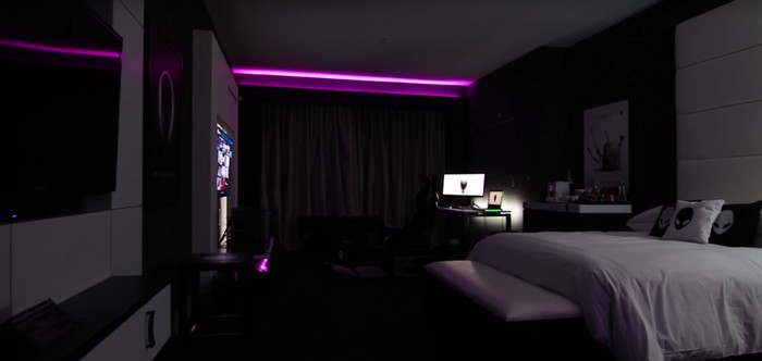 Jika kalian adalah seorang gamer kelas kakap, dan akan pergi ke Panama, mungkin kamar hotel bikinan Alienware ini cocok untuk kalian. Foto: YouTube/Latinoamerica