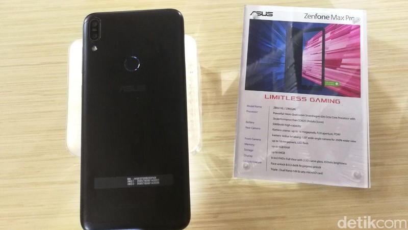 Ditenagai prosesor Snapdragon 636. Asus menghadirkan Zenfone Max Pro ini dengan tiga varian memori internal. Foto: Muhammad Alif Goenawan/detikINET