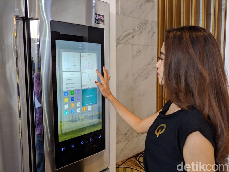 Lemari es pintar Samsung tidak hanya terkoneksi dengan internet, di bagian depannya terdapat layar sentuh. Foto: detikINET/Adi Fida Rahman