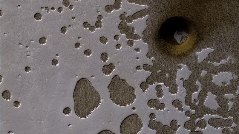 Lubang besar yang berada di kutub selatan Mars ini masih belum diketahui kepastiannya oleh NASA, walau beberapa pihak menyebut bahwa itu merupakan kawah. (Foto: CNET)