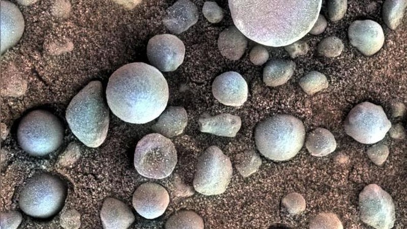 Apakah ini kumpulan blueberry yang berada di Mars? Bukan, ini hanya batu-batu bulat di dekat kawah Fram. (Foto: CNET)