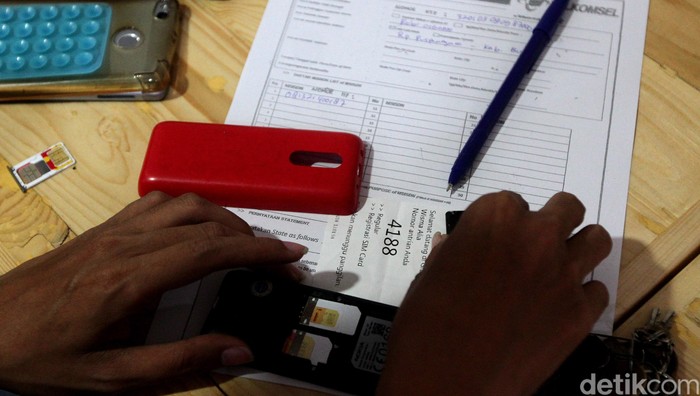 Pelanggan mengisi syarat-syarat untuk registrasi ulang SIM card prabayar.