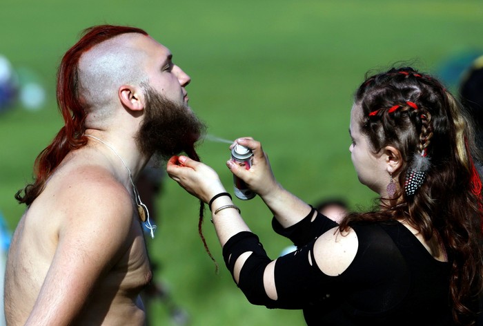 Vojtech Ruzicka saat sedang mempersiapkan diri menjadi salah satu karakter dari game World of Warcraft. David W Cerny/Reuters.