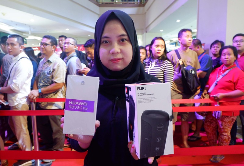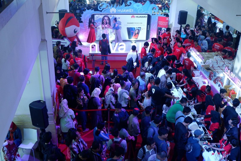 Warga mengantri antre demi mendapatkan smartphone pada pogram First Sale Huawei Nova 2 Lite di ITC Roxy Mas, Jakarta, Sabtu (5/5/2018). Dok. Huawei