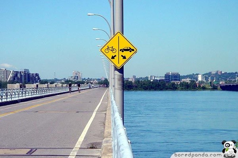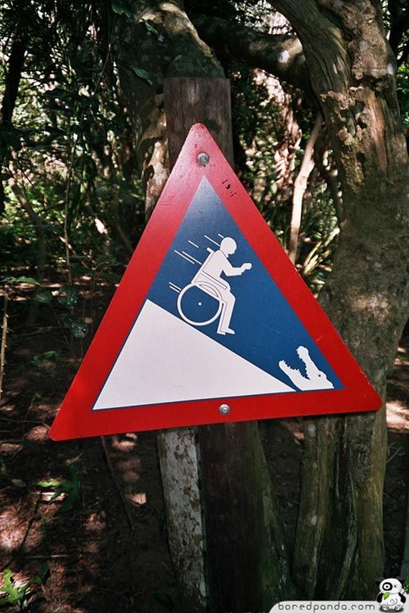 Maksud papan ini hati-hati terhadap orang yang menyebrang, tapi di sini malah hewan yang nyebrang. Kemana manusianya? Foto: Boredpanda