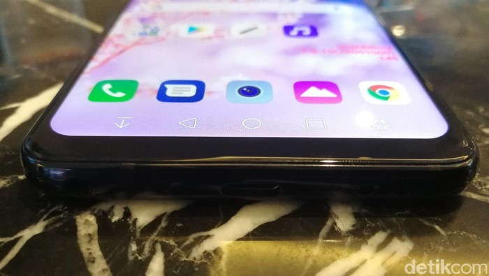 Berbeda dengan varian standar, G7+ ThinQ ini memiliki kapasitas RAM dan ROM yang lebih besar, yakni 6 GB dan 128 GB. Kapasitas memori internalnya ini tentu bisa ditambah dengan slot microSD sampai 2 TB. (Foto: detikINET/Muhammad Alif Goenawan)