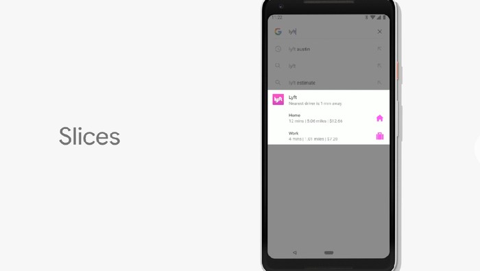 Slices adalah ketika pengguna mencari aplikasi di search bar, Android akan memprediksi apa yang akan dilakukan menggunakan aplikasi tersebut. Foto: Dok. Google