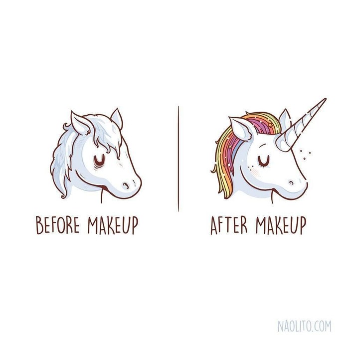 Awalnya sih mukanya pucat, tapi begitu pakai makeup langsung warna-warni. Foto:Β Instagram @naolito