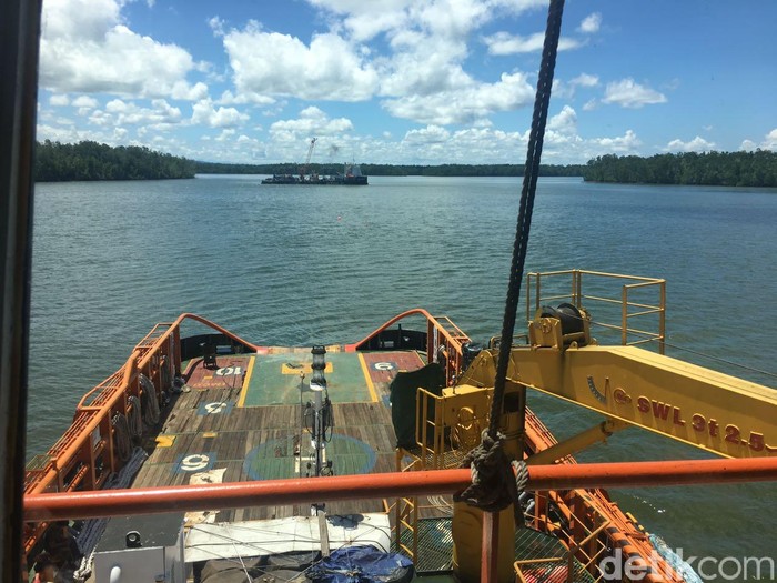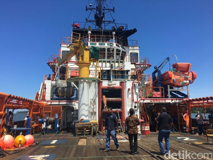 Sayangnya saat menyambangi kapal Nostag 10 yang berada di Teluk Bintuni, pengunjung tak diizinkan naik ke atas dek karena penanaman kabel sudah dimulai. Foto: Agus Tri Haryanto/detikINET