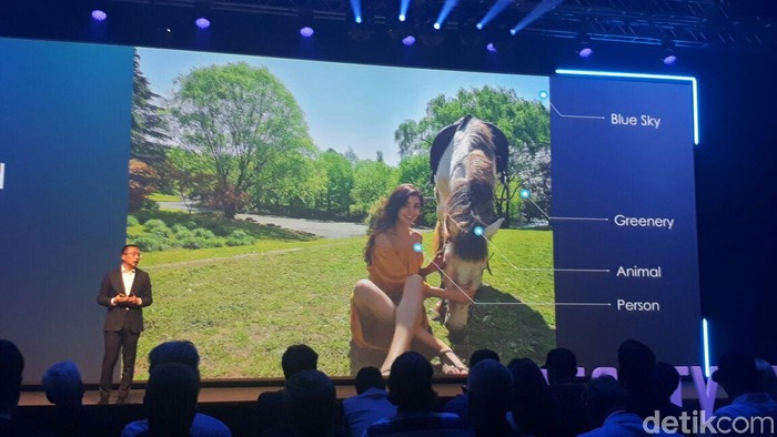 Cara lain Honor 10 mendobrak tradisi adalah lewat teknologi kecerdasan buatan (artificial intelligence) di kamera.Β Foto: detikINET/Indah Mutiara Kami