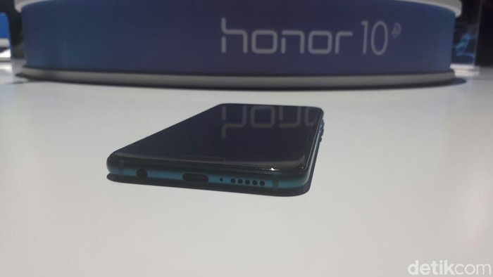 Tersedia dua pilihan ruang penyimpanan yaitu 64 GB dan 128 GB, namun Honor 10 tidak memiliki slot micro SD.Β Foto: detikINET/Indah Mutiara Kami