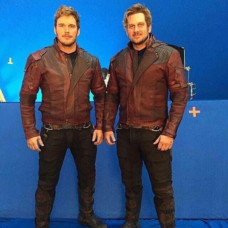 Chris Pratt berperan sebagai Star Lord dan stuntman penggantinya. Mirip bukan? (Foto: Facebook)