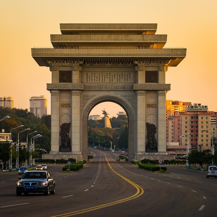 Korut juga memiliki bangunan mirip Arc de Triomph milik Paris, sebagaimana Kediri punya Monumen Simpang Lima Gumul. (Foto: Instagram/dprk360)