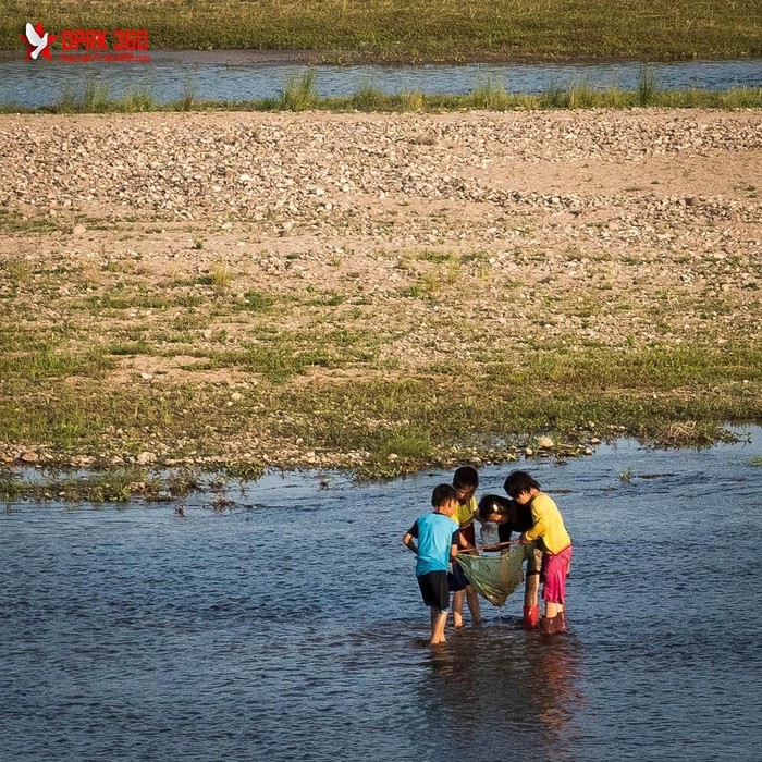 Bergeser ke daerah pinggiran, tampak anak-anak yang tengah menangkap ikan. (Foto: Instagram/dprk360)