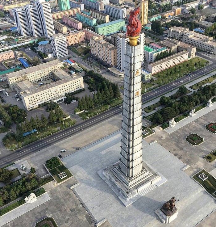 Korut memiliki monumen bernama Juche Tower yang sekilas tampak mirip dengan Monumen Nasional di Jakarta. (Foto: Instagram/dprk360)