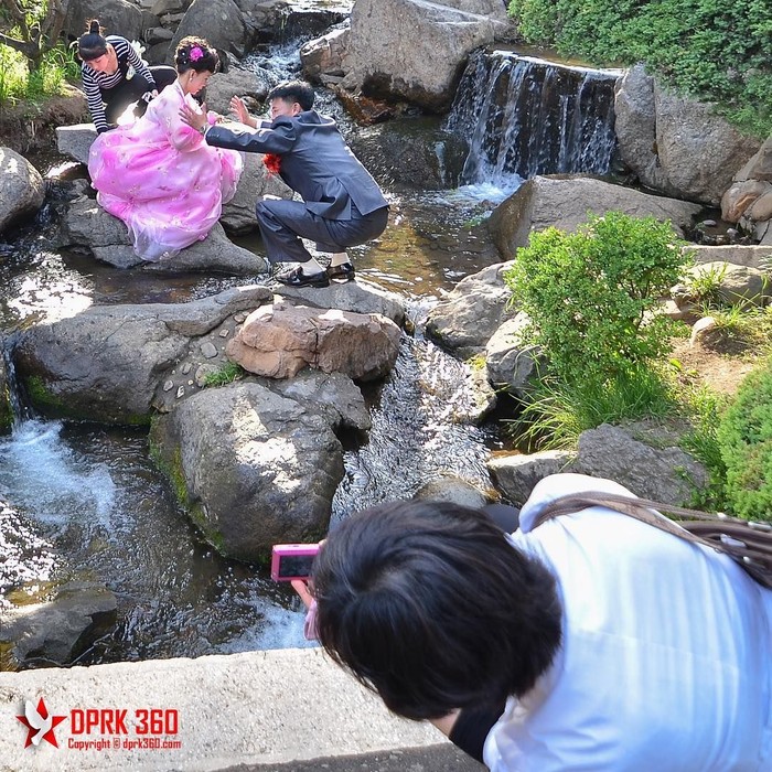 Tak jarang, pasangan Korut memilih tempat yang tak biasa untuk melakukan sesi foto pra-nikah. (Foto: Instagram/dprk360)