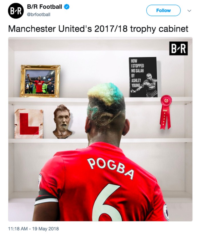 Paul Pogba meratapi lemari trofi United yang kosong di musim ini. Foto: istimewa