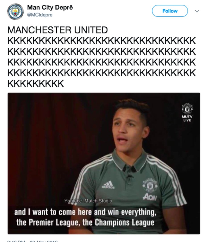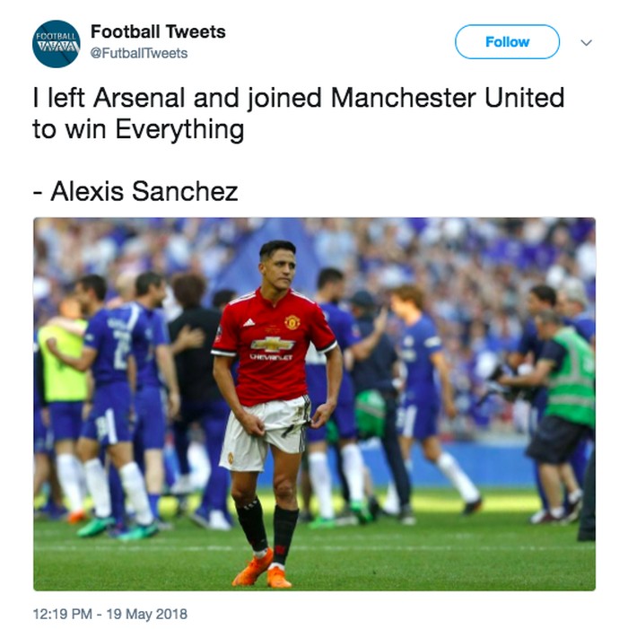 Alexis Sanchez kembali menjadi bahan di meme ini. Dia berkata ingin menang segalanya di United, tapi akhirnya malah jadi bahan tertawaan. Foto: istimewa