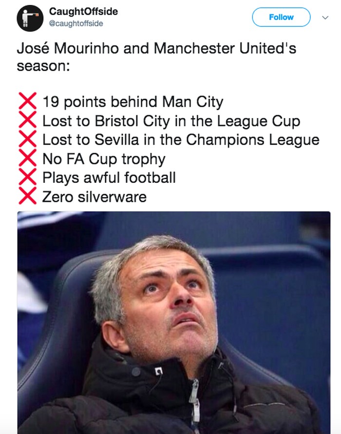 Tidak ada prestasi membanggakan Mourinho untuk United di musim ini. Foto: istimewa
