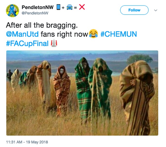 Para fans MU digambarka tertunduk dan menutupi wajah mereka. Foto: istimewa
