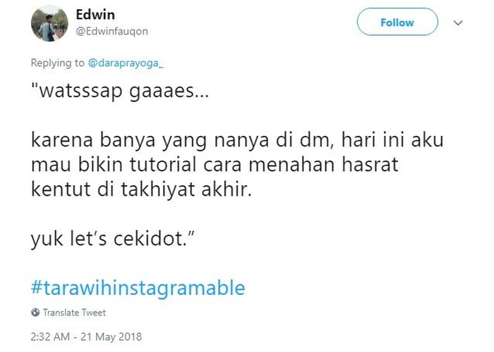 Ini juga ngawur, upload foto pas tarawih tapi gak ikut salat. Foto: istimewa