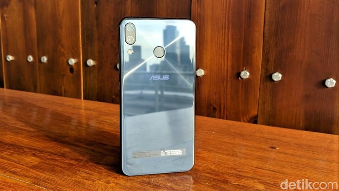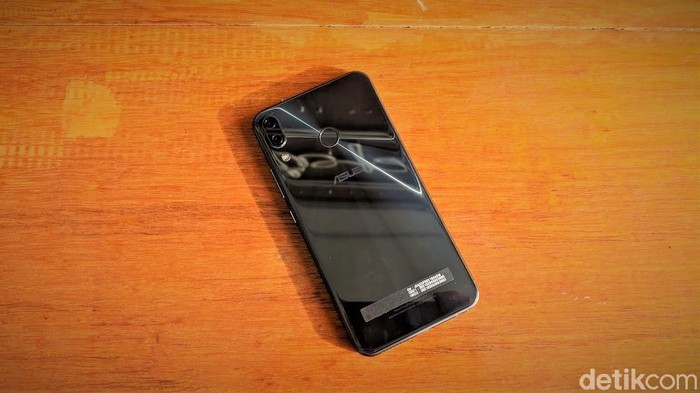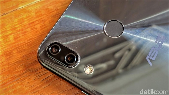 Bodi belakangnya berlapis kaca dengan aksen ciri khas Zenfone. Foto: Adi Fida Rahman/detikINET