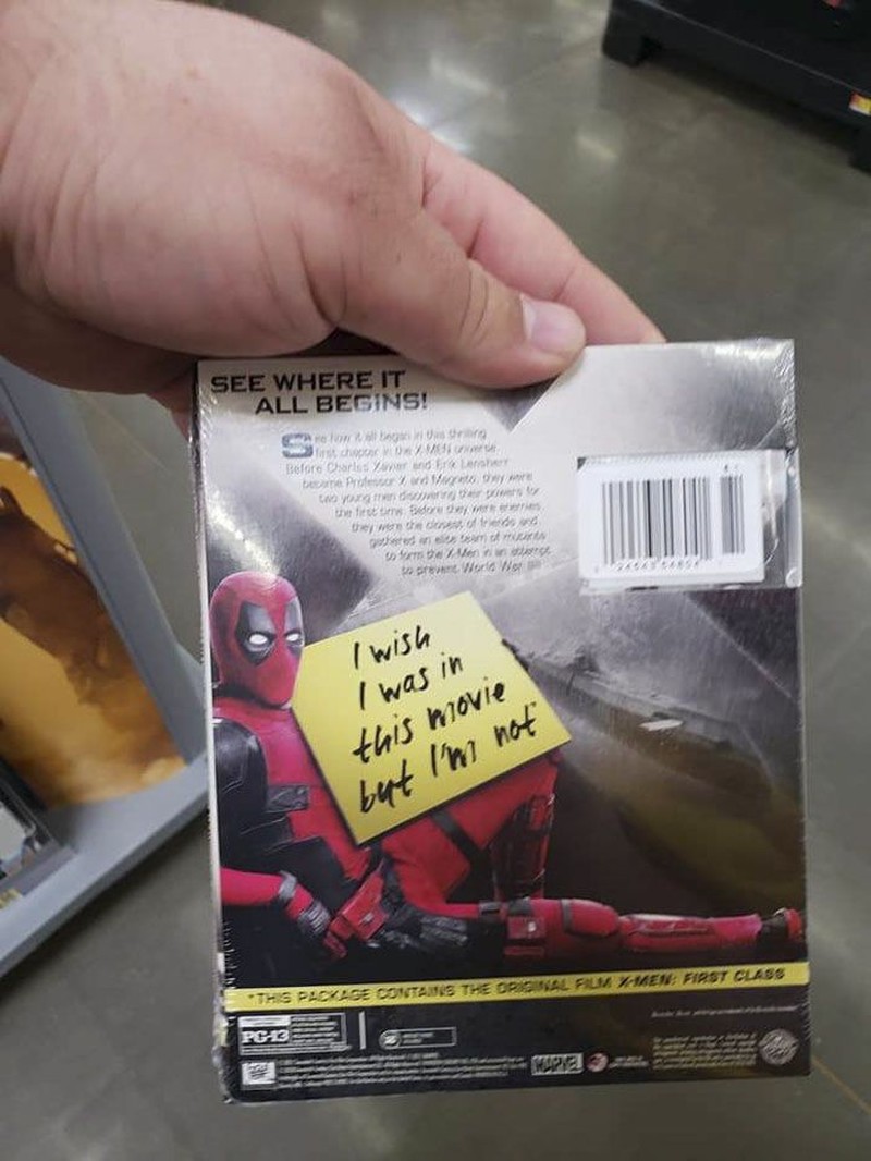 Lucunya pada DVD film tersebut, semua bagian cover depannya dihiasi dengan wajah Deadpool. (Foto: Boredpanda)