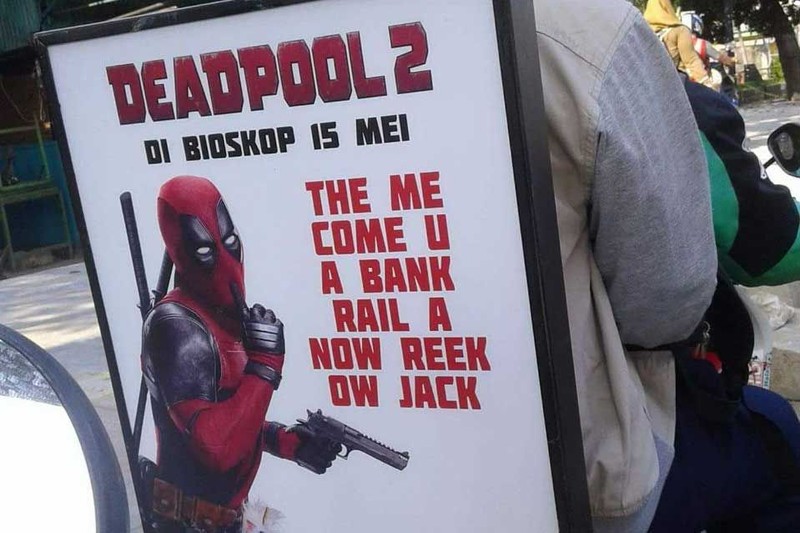 Kalau yang ini promosi di ojek online Indonesia. Selain itu Deadpool 2 juga tampil kocak di video clip Celine Dion hingga bermain di MU. (Foto: Boredpanda)