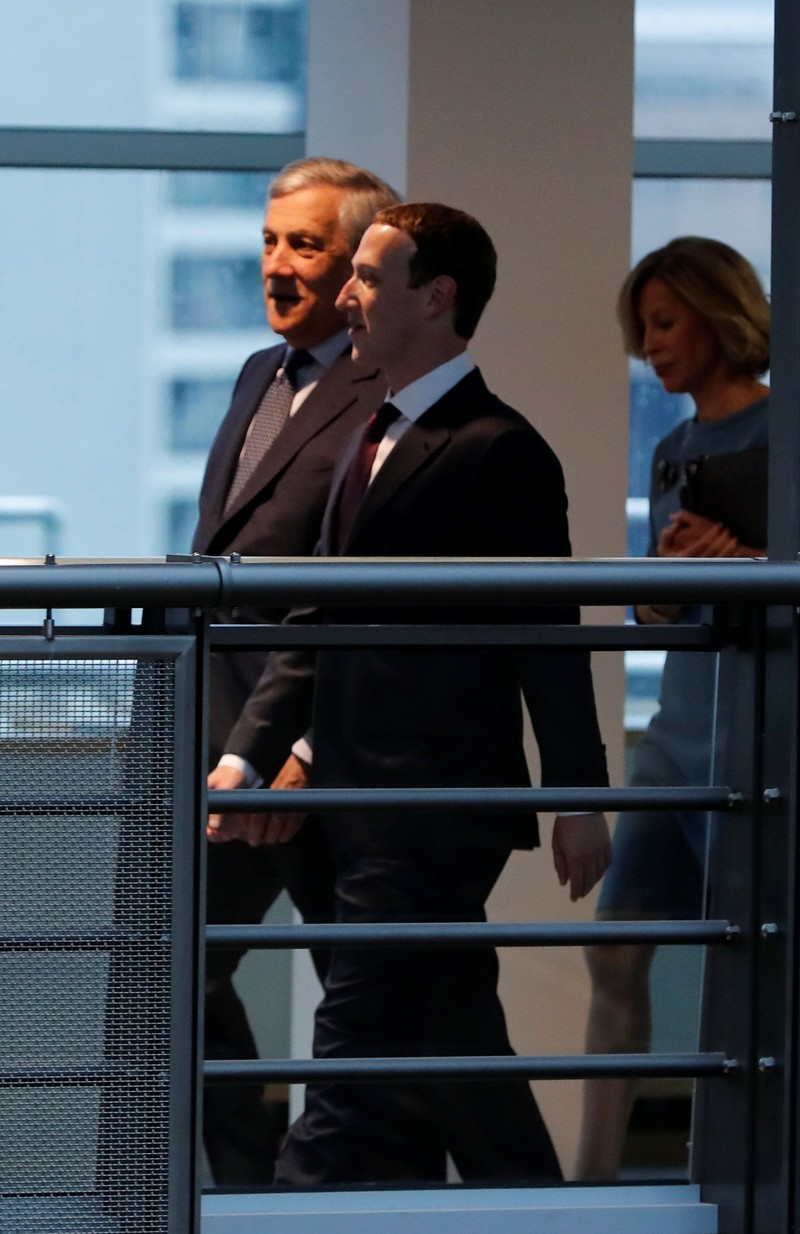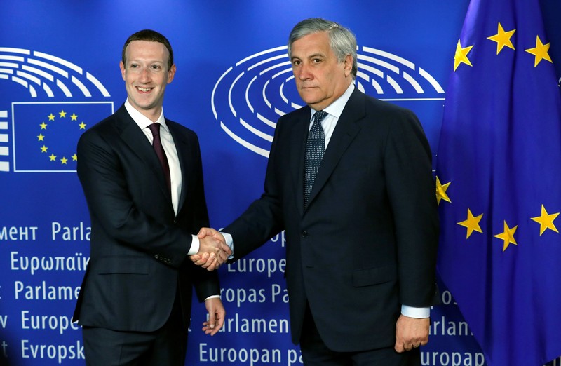 Zuck berjabatan dengan Presiden Parlemen Eropa Antonio Tajani. (Foto: Reuters)