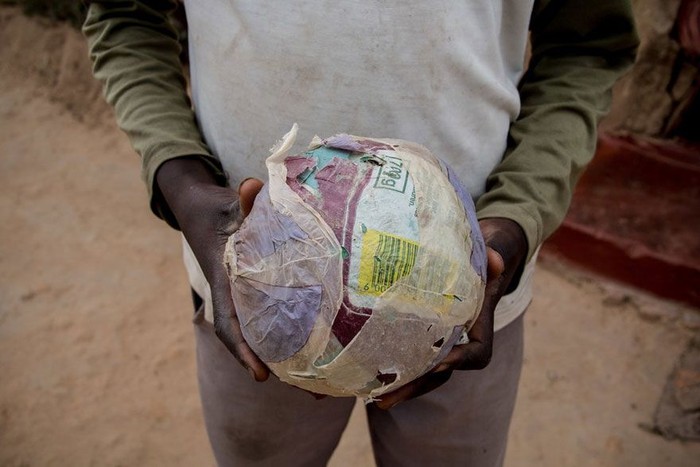 Bocah di Zimbabwe memegang bola seadanya. Orang tuanya bergaji USD 34 per bulan. Foto: Gapminder