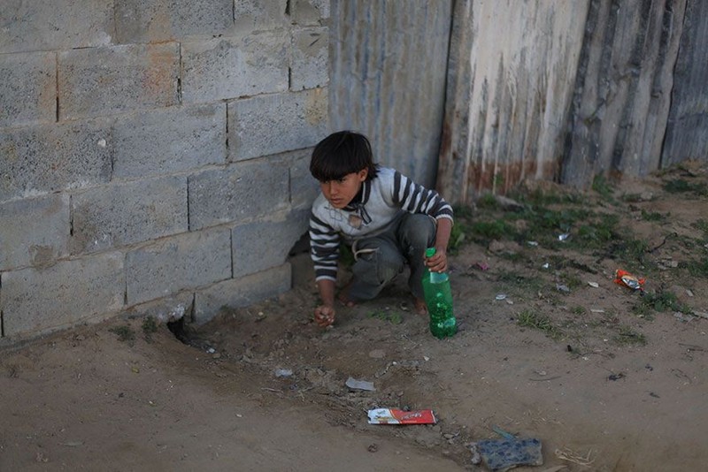 Anak di Palestina mainan favoritnya botol plastik. Orang tuanya berpenghasilan USD 112 per bulan. Foto: Gapminder