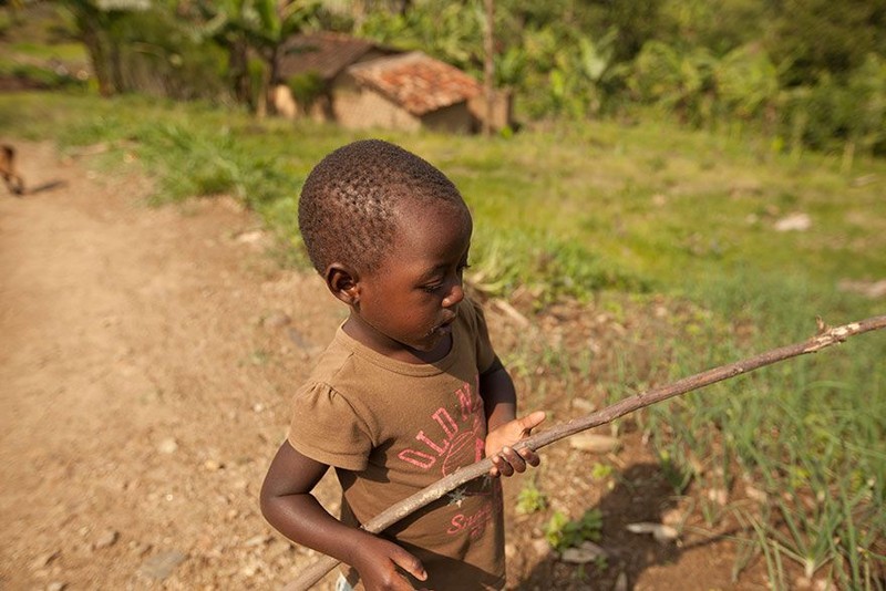 Anak di Rwanda ini memegang tongkat mainannya. Orang tuanya padahal berpenghasilan cukup lumayan, USD 251 per bulan. Foto: Gapminder