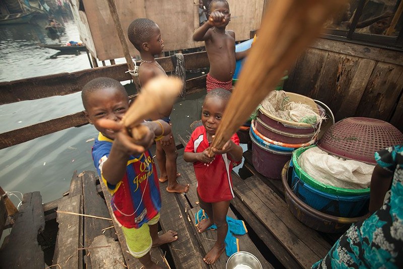 Tongkat juga jadi mainan favorit anak di Nigeria ini di mana penghasilan orang tua USD 124 per bulan. Foto: Gapminder