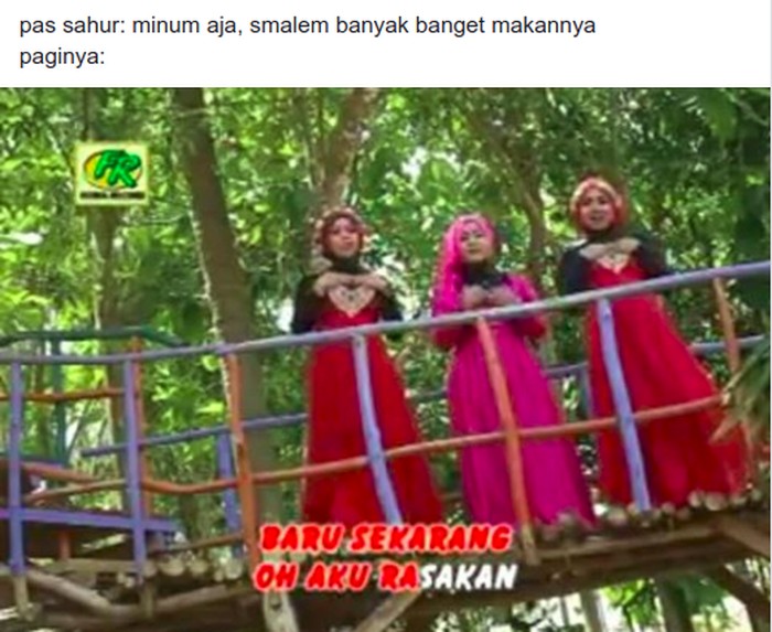 Sahur cuma minum air putih. Bangun pagi udah terasa lapar. Foto: Facebook Qasidah Memes for All Occasions