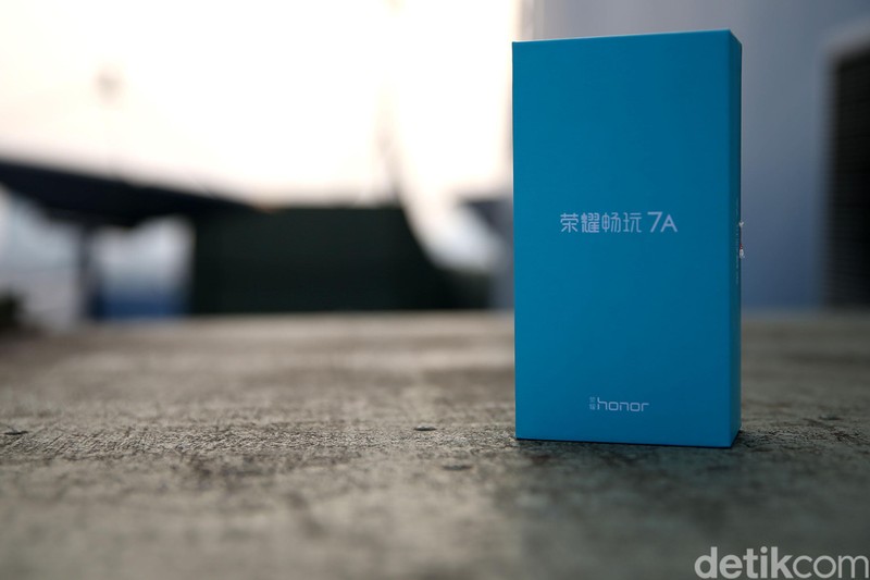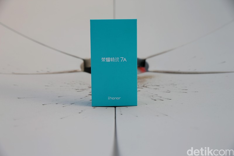 Ini kemasan Honor 7A. Seperti halnya kebanyakan kemasan ponsel Honor lainnya, warna biru muda jadi pilihan. Foto: Muhammad Ridho