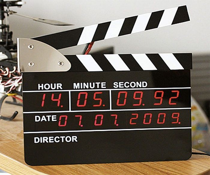 Clapperboard. Kebanyakan alarm bentuknya mungkin membosankan. Nah, alarm yang satu ini tampilannya menarik berupa clapperboard seperti untuk syuting film. Fiturnya antara lain mengeluarkan suara berisik yang baru akan berhenti jika kita menggoyangkannya. Foto: Istimewa