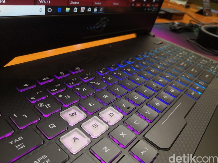 Perbedaan dua laptop gaming ROG ini hanya terletak pada keyboard. Di desain mirip dengan keyboard desktop, SCAR II dan HERO II didukung RGB backlight yang bisa disinkronisasi dengan Aura sync ke perangkat ROG lainnya. (Foto: detIkINET/Muhamad Reza Sulaiman)