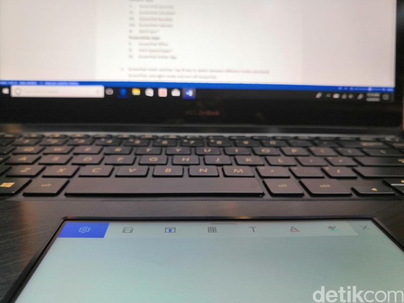 Ada beberapa mode screenpad yang ditawarkan oleh ZenBook Pro 15 seri UX580 ini. Model dual screen memungkinkan pengguna menggeser window ke bawah untuk ditampilkan di screenpad. (Foto: detIkINET/Muhamad Reza Sulaiman)