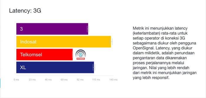 Kategori Latency 3G dimenangi Telkomsel. Foto: OpenSignal