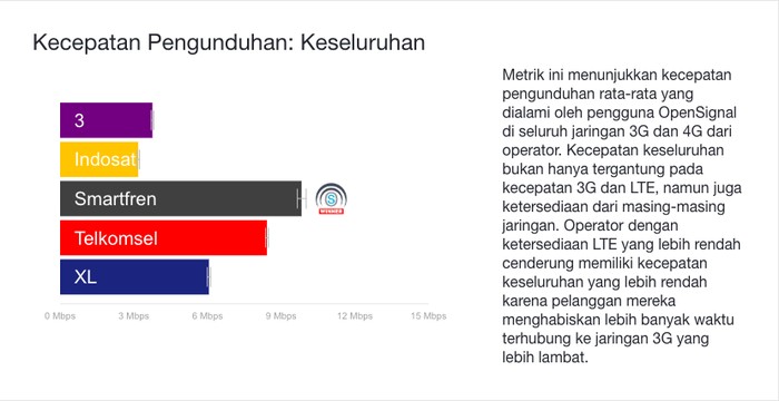 Kategori Kecepatan PengunduhanΒ Keseluruhan dimenangi oleh Smartfren. KeceFoto: OpenSignal