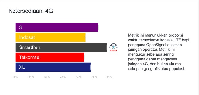Ketersediaan 4G dimenangi Smartfren. Foto: OpenSignal