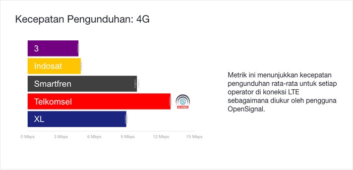 Kategori Kecepatan Pengunduhan 3G dimenangi oleh Telkomsel. Foto: OpenSignal