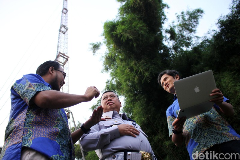 Direktur Binkes Kemenhub Ahmad Yani, Head Telco Service Operation XL Axiata Hendrik, dan Head Customer Experience XL Axiata Ahmad Hamzah mengecek langsung BTS.